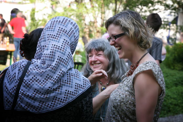 De hele ploeg vaste medewerkers van het centrum verschenen op de trappen. Je kon je geen beter beeld voorstellen van hoe het multiculturele Brussel (en België) van de 21ste eeuw er uit ziet of overal zou moeten uitzien. Frans en Nederlands werden netjes afgewisseld, autochtonen en allochtonen, met of zonder hoofddoek: samen, in respect voor elkaar, verenigd voor een betere gezondheidszorg én een betere wereld.