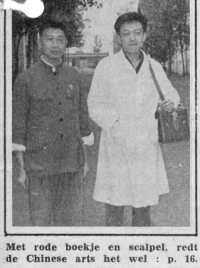 “Wij krijgen uitleg over de dokters op blote voeten. Voor de Culturele Revolutie verloor men het platteland uit het oog. Er was bitter weinig medische hulp. Dat is nu gecorrigeerd. In de fabrieken en landbouwcommunes hebben de massa’s (de terminologie van toen!, km) kameraden aangeduid om arbeider-dokter te worden. Die mensen hebben dan gedurende zes maanden een intensieve cursus in algemene geneeskunde gevolgd. Ze hebben stages gedaan in de hospitalen. Nu kunnen ze de meest voorkomende kwalen helen. Ze blijven in contact met hun professoren en bekwamen zich verder terwijl zij ook aan de productie blijven deelnemen.” (Humo, 1971)