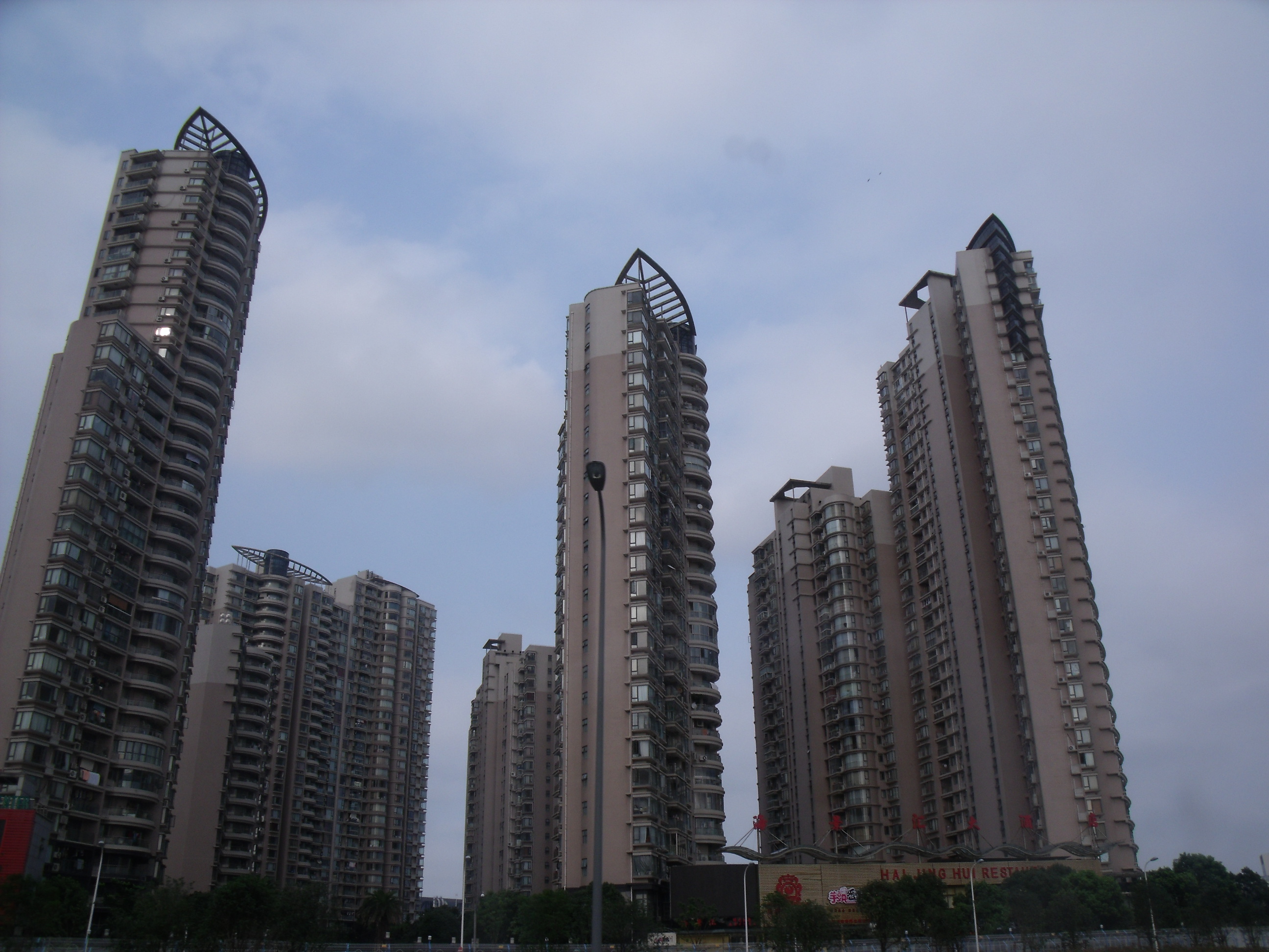 Vijf of meer hoogbouwflats in dezelfde stijl, passend in een groter ruimtelijk plan. Hier in Shanghai, maar ook elders. Foto Luce Stappaerts.