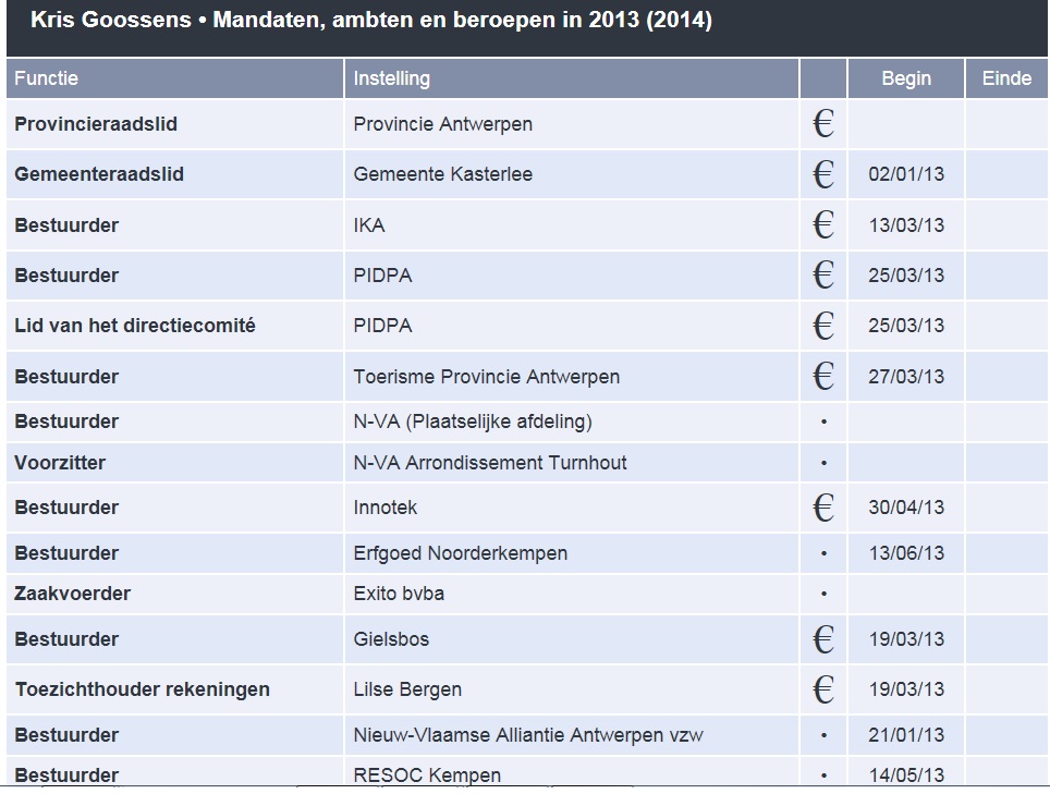 De vergoede mandaten van deze collega stegen in 2013 van 2 naar 9.