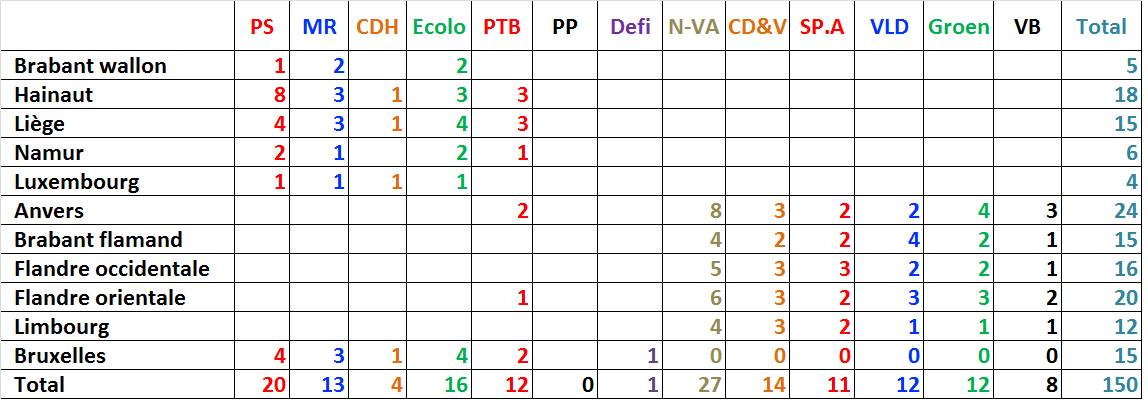 En passant: leuk om vast te stellen is hoe er in de tabel van prof. Delwit geen aparte kolom is voor PTB en PVDA (zoals voor Ecolo en Groen en de anderen). De Franstalige politicoloog doet zelfs geen moeite meer om PTB voor Vlaanderen te vertalen naar PVDA en omgekeerd. Sinds die uitspraak over de partijfinanciering zijn we, ook meer en meer in de Vlaamse media, nu toch wel definitief erkend als een Belgische nationale partij (de enige nog).