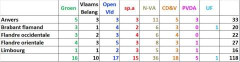 Voor het Vlaams Parlement berekent Delwit voor de PVDA zelfs 3 zetels in Antwerpen, 1 in Oost-Vlaanderen en 1 in Limburg. Zie die tabel hier (PTB = PVDA):