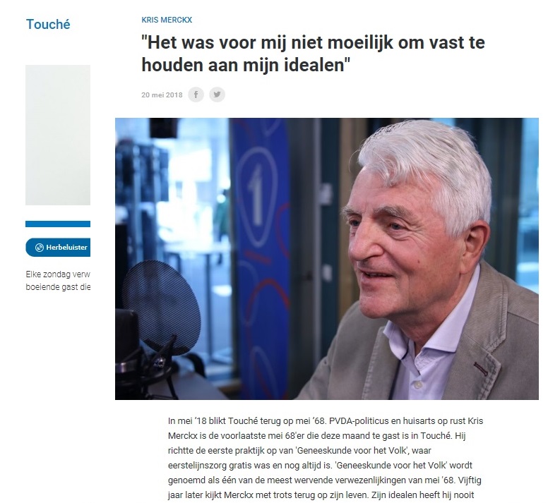 Dat interview in Touché kan je via deze link nog altijd beluisteren : Kris Merckx: “Het was voor mij niet moeilijk om vast te houden aan mijn idealen” .